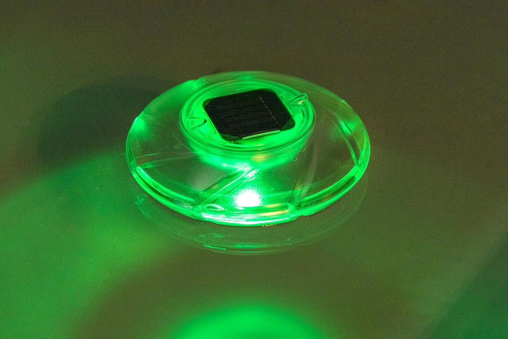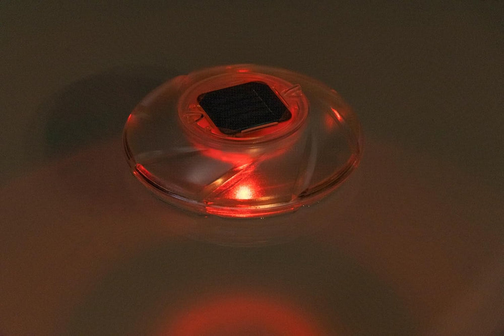 إضاءة مسبح عائمة من Bestway تعمل بالطاقة الشمسية، تضيف أجواء مميزة للمسبح ليلاً مع ألوان متغيرة تلقائياً. مقاومة للماء وتعمل حتى 8 ساعات بعد الشحن.