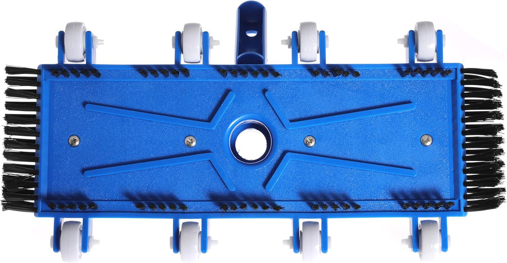 Durable pool vacuum head with side brushes for better cleaning performance. Designed to remove dirt and debris from pool floors effectively.